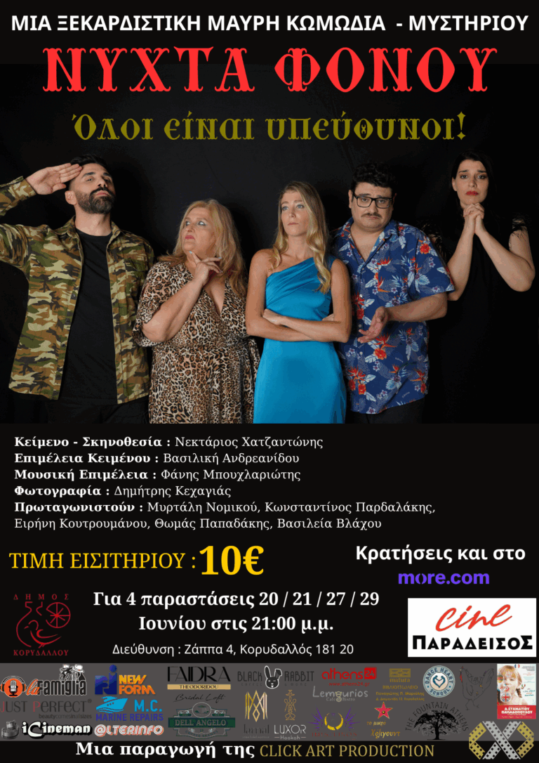 Προηγούμενο Επόμενο ΝΥΧΤΑ ΦΟΝΟΥ - ΜΑΥΡΗ ΚΩΜΩΔΙΑ Facebook Instagram Το περιοδικό Χάι News παρευρέθηκε στην παράσταση «Νύχτα Φόνου»! Το περιοδικό Χάι News παρουσιάζει την διαδικτυακή μας σειρά «Πρόσκληση»! Στείλε μας το βιογραφικό σου για να μπεις κι εσύ στην ομάδα της CLICK ART! clickartcasting@gmail.com ΕΡΧΕΤΑΙ Ο Β' ΚΥΚΛΟΣ ΤΗΣΣΕΙΡΑΣ «ΠΡΟΣΚΛΗΣΗ» Facebook Instagram ΠΡΟΣΚΛΗΣΗ(WEB SERIES)A' ΚΥΚΛΟΣ Πατήστε εδώ ΤΟ ΠΡΟΞΕΝΙΟΣΤΗΝ ΠΟΡΤΑ ΣΟΥ(WEB SERIES) Πατήστε εδώ ROULETTE ART Πατήστε εδώ CLICK ART SOCIAL Facebook Instagram Youtube Tiktok Twitter ΣΥΝΕΡΓΑΤΕΣ & ΧΟΡΗΓΟΙ